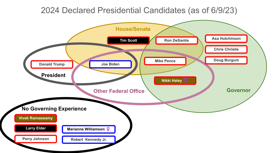 Revisiting a visualization on governing experience I did for the last election. The clown car is not nearly as full as it was the last time in June but still plenty of folks to keep track of.