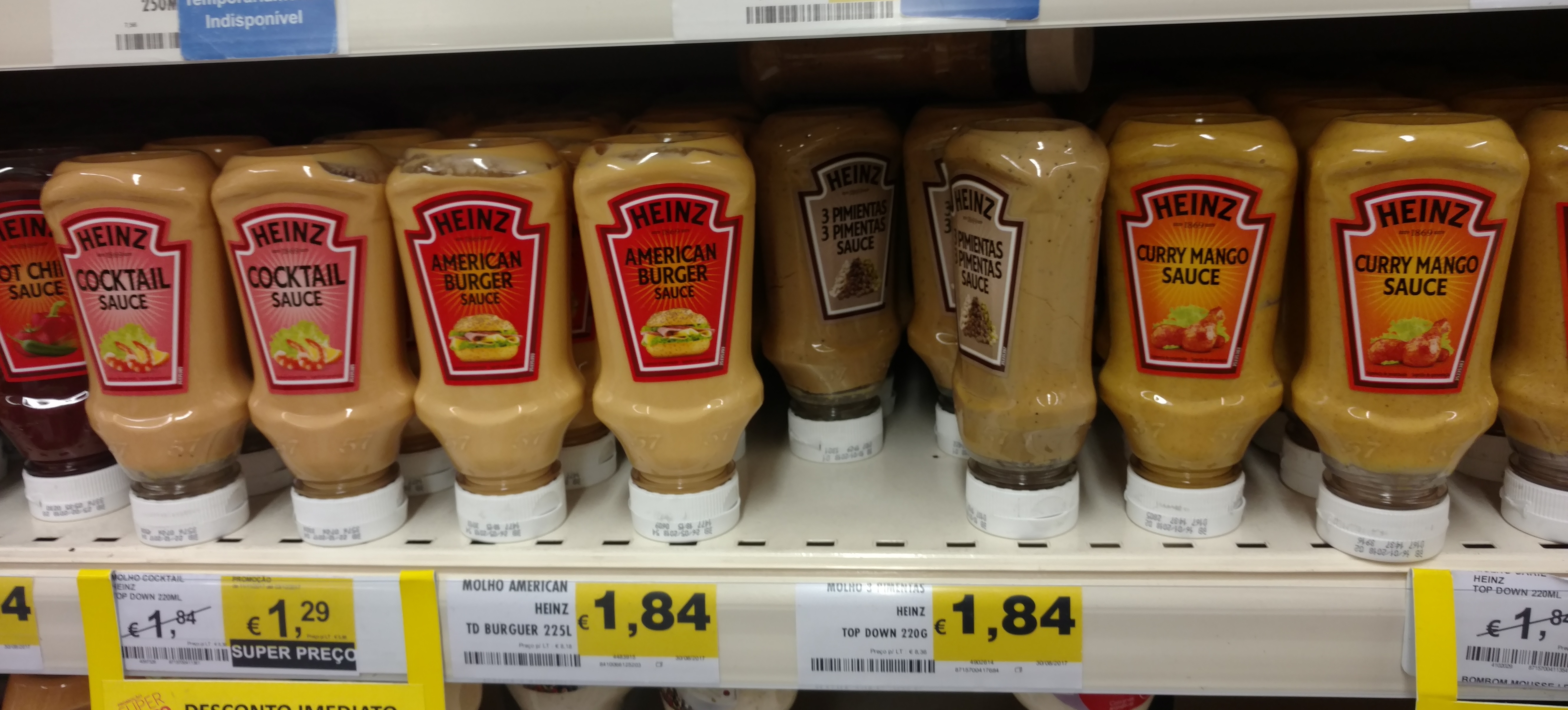 At first I was disappointed that the major condiment brands represented were American, however a closer look found that none of these Heinz products are available in the US: