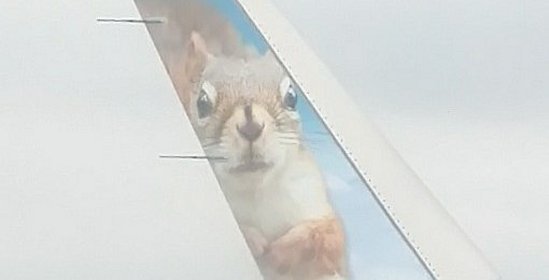 I flew to Salt Lake city earlier this year on Frontier airlines. Imagine my surprise when I opened the window to discover my companion outside the plane, a twenty foot squirrel staring me down from the end of the wing.
